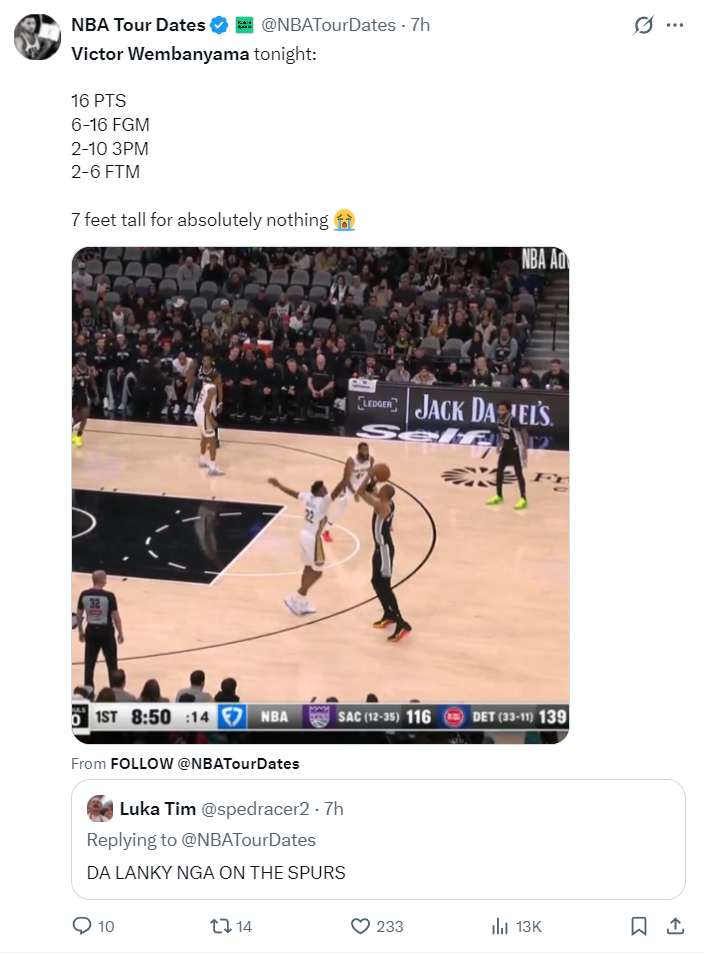 当然,文班亚马还年轻,马刺教练组肯定给了他自主的进攻选择,可他明显过于高估自己的投射能力。